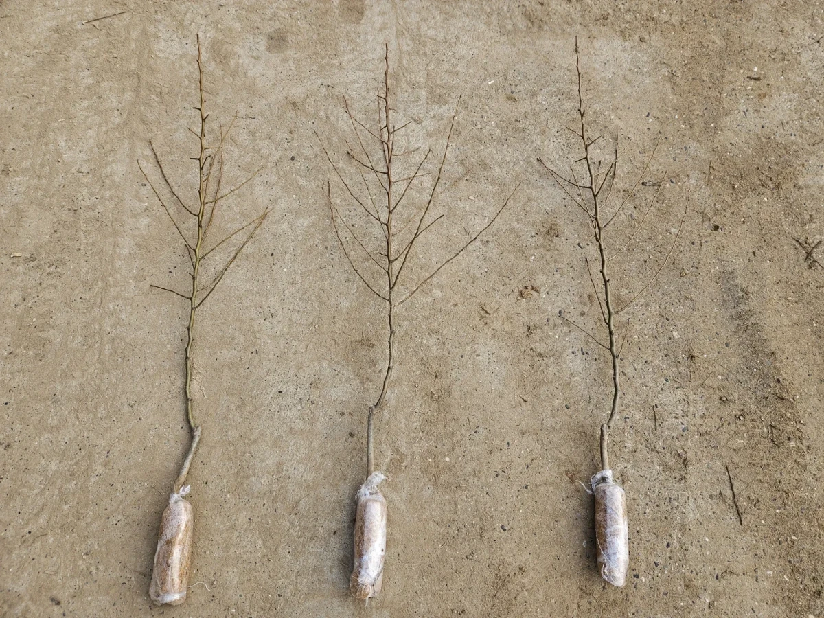 Whip fruit trees are young, one-year-old trees consisting of a single, straight stem without any side branches. At this early stage, the tree is strong, flexible, and ideal for shaping.